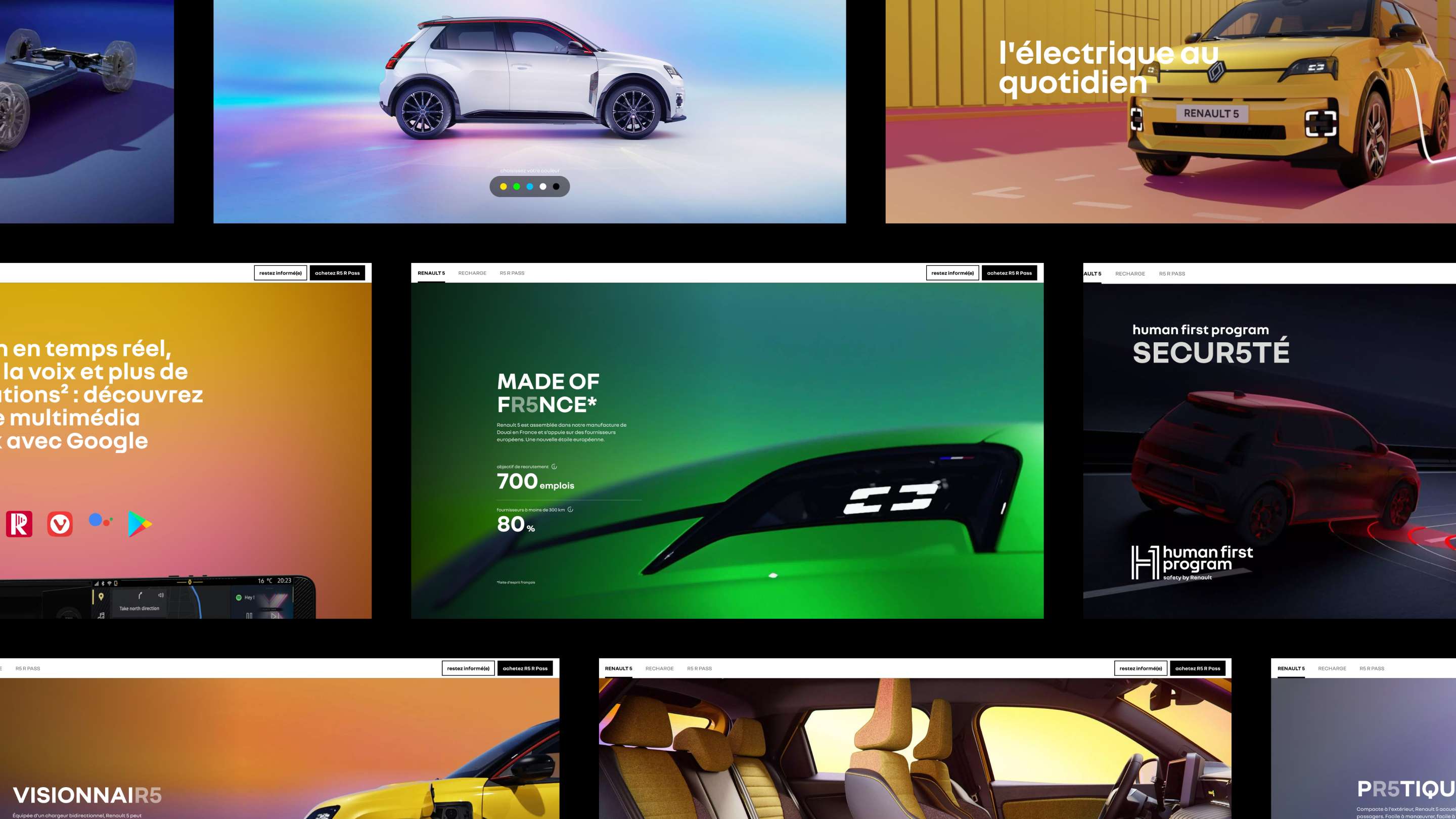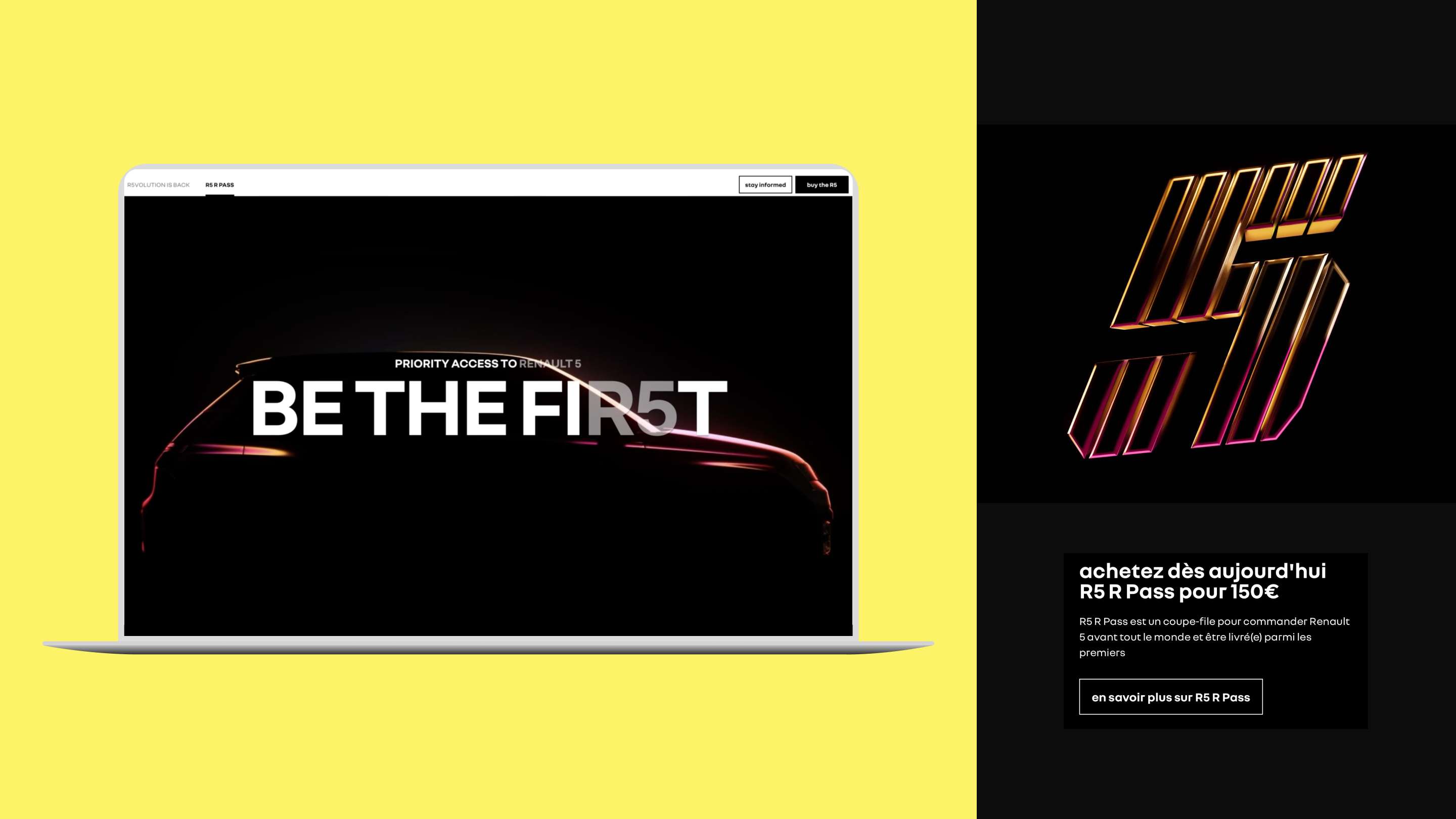 Nous avons orchestré le suspense en révélant indice après indice des caractéristiques du véhicule. Pour communiquer autour de R5 en plein embargo sur son design, le chiffre 5 a été transformé en un objet aussi iconique que le véhicule lui-même. Il a été utilisé pour l'ensemble des contenus et interactions, en mettant l’accent sur des gros plans des caractéristiques emblématiques de l’ancienne Renault 5, incitant ainsi à rejoindre le Waiting Program en ligne.