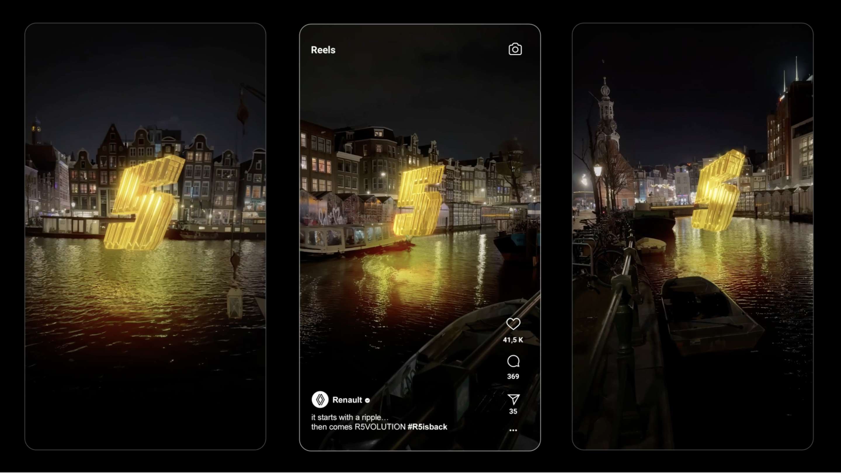 Une équipe experte social media et activation gère calendrier et assets pour la France et les pays où R5 est disponible. Elle a créé la campagne cross-platform dès la phase de teasing avec des contenus paid et organiques autour des gros plans véhicule et du chiffre 5, mais aussi sa matérialisation en 3D dans des vidéos Fake Out of Home situées dans les lieux symboliques des 8 plus grandes villes d’Europe, 9 687 billboards interactifs… La team a également piloté le reveal au Geneva Motor Show avec 1600 posts dans plus de 35 pays, la création de contenus en amont mais aussi sur place, l’organisation d’un live avec les Ray Ban Meta Glasses et un large dispositif d’influence pour booster sa visibilité.
